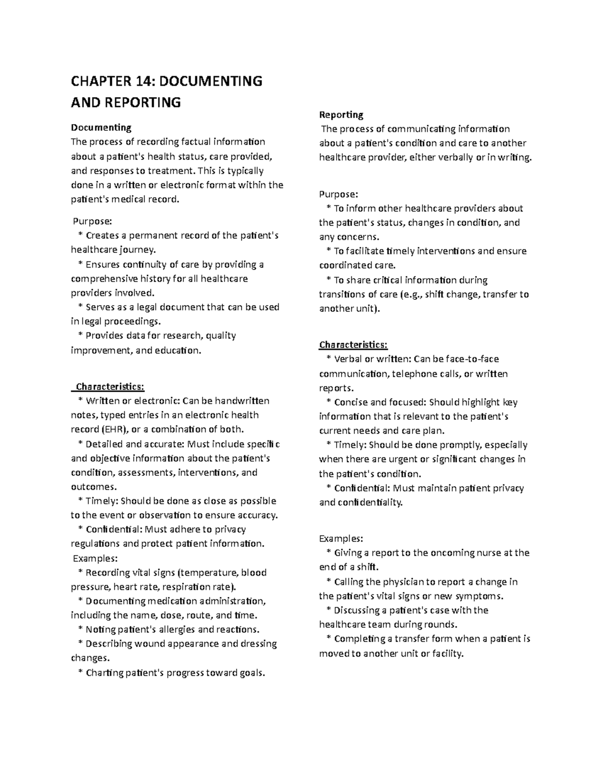 CHAPTER 14: DOCUMENTING & REPORTING IN HEALTHCARE - Studocu