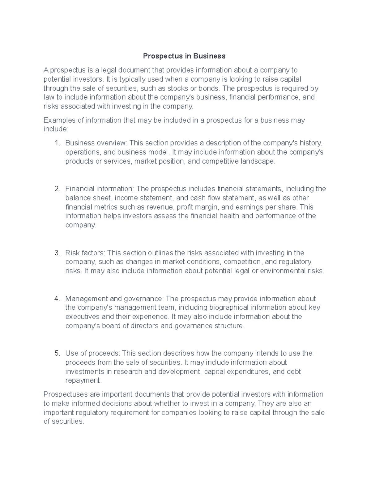 Prospectus Example - Prospectus Here is what a Prospectus should ...