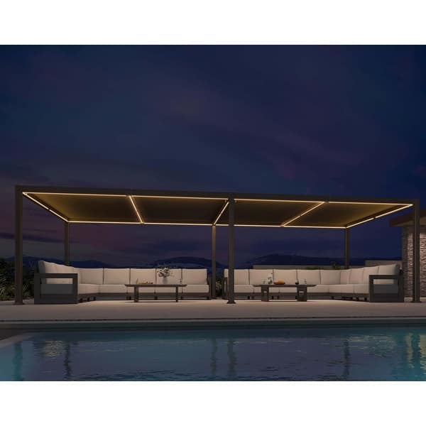 PURPLE LEAF Solar Louvered Pergola with LED String Lights Aluminum ...