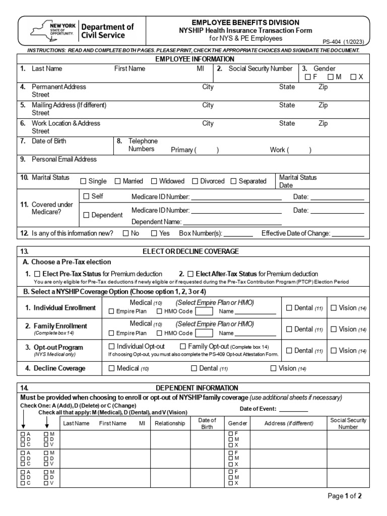 New York State Health Insurance Transaction Form (PS-404) | Business ...