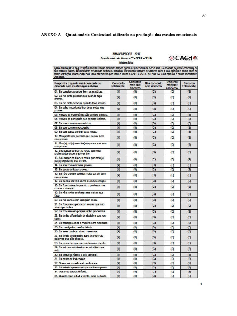 Questionario Auto Eficacia Escolar - ALUNO | PDF