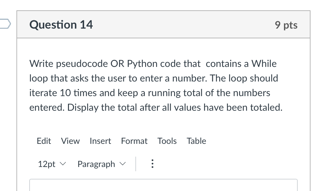 Solved Question 14 9 pts Write pseudocode OR Python code | Chegg.com
