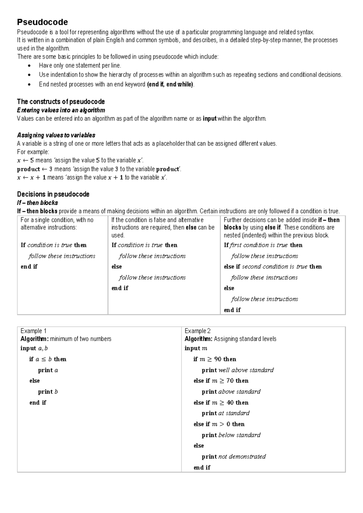 Module 2: Algorithms and Pseudocode Representations - Studocu
