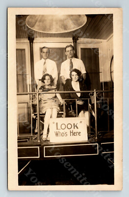 Wd2 Postcard RPPC Early 1900's Frown Couples psing " Look who's here ...