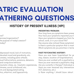 Psychiatric Evaluation Data Template & Questions | Med, Nursing, LCSW ...