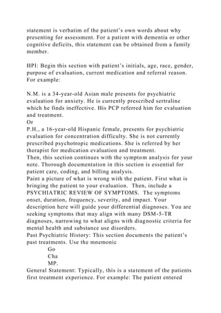 Mastering Psychiatric Evaluations: HPI Guidelines & Best | Course Hero