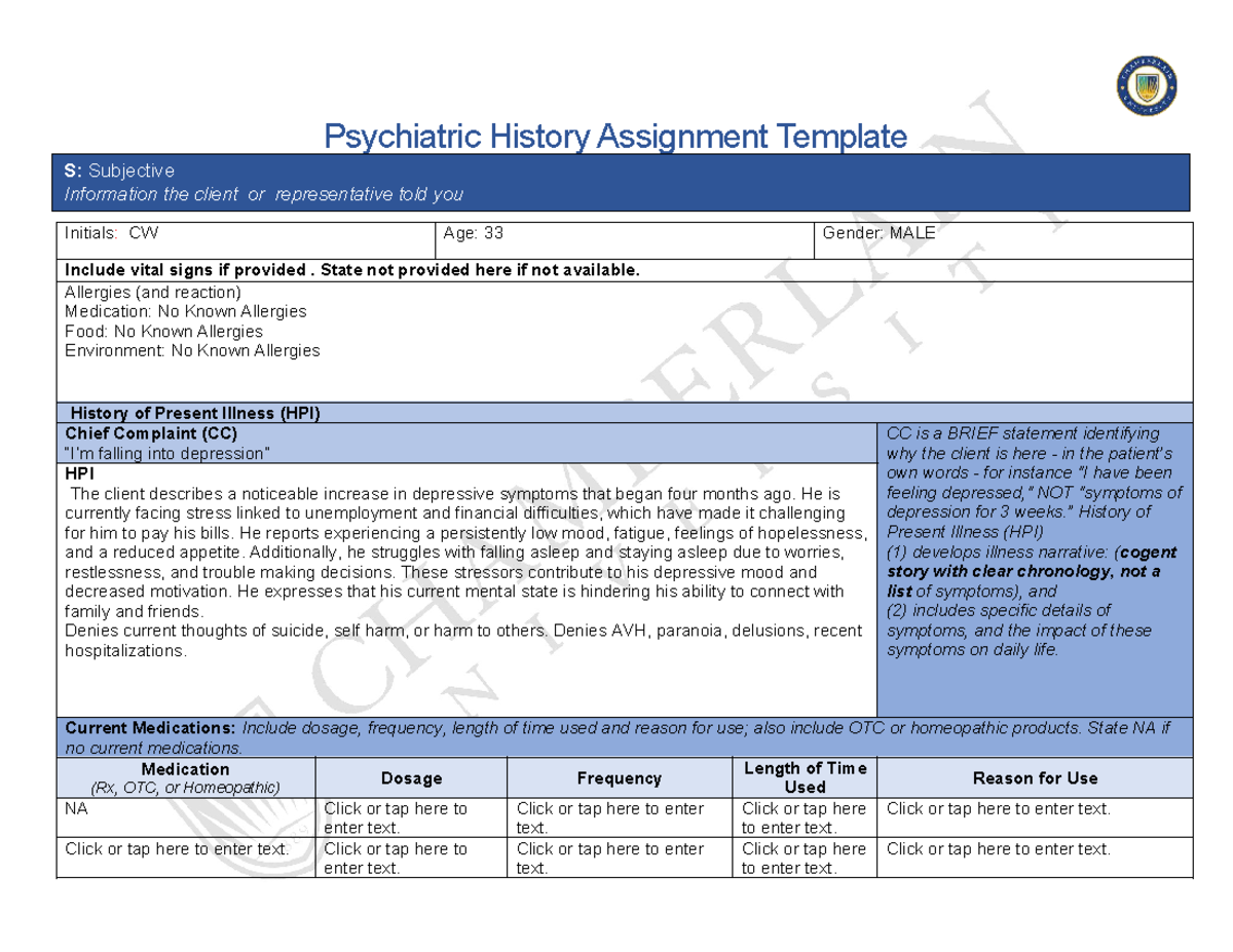 NR 548 Psychiatric History Assignment Template: Client Overview and HPI ...