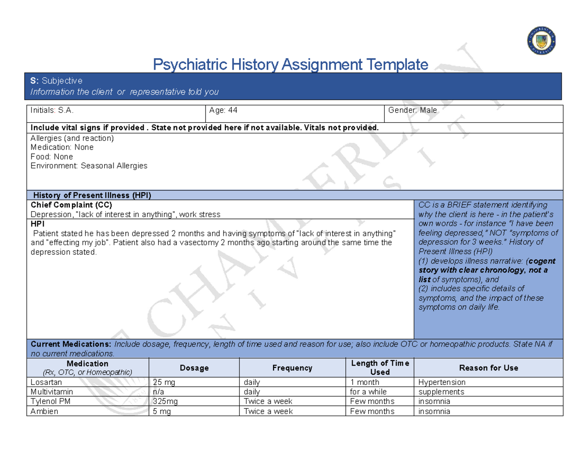 NU646 Initial Psychiatric SOAP Note Template - Initial Psychiatric SOAP ...