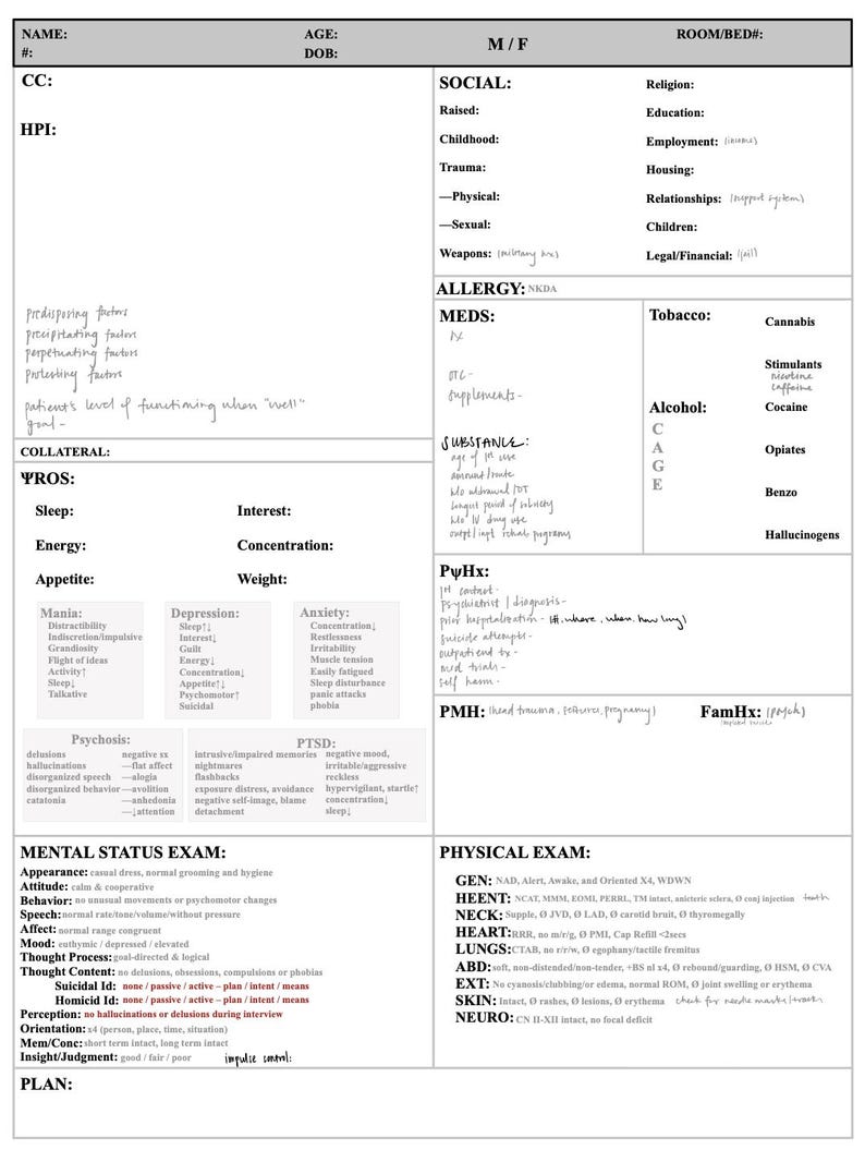 Comprehensive Psychiatric Patient Note Template for Assessments ...