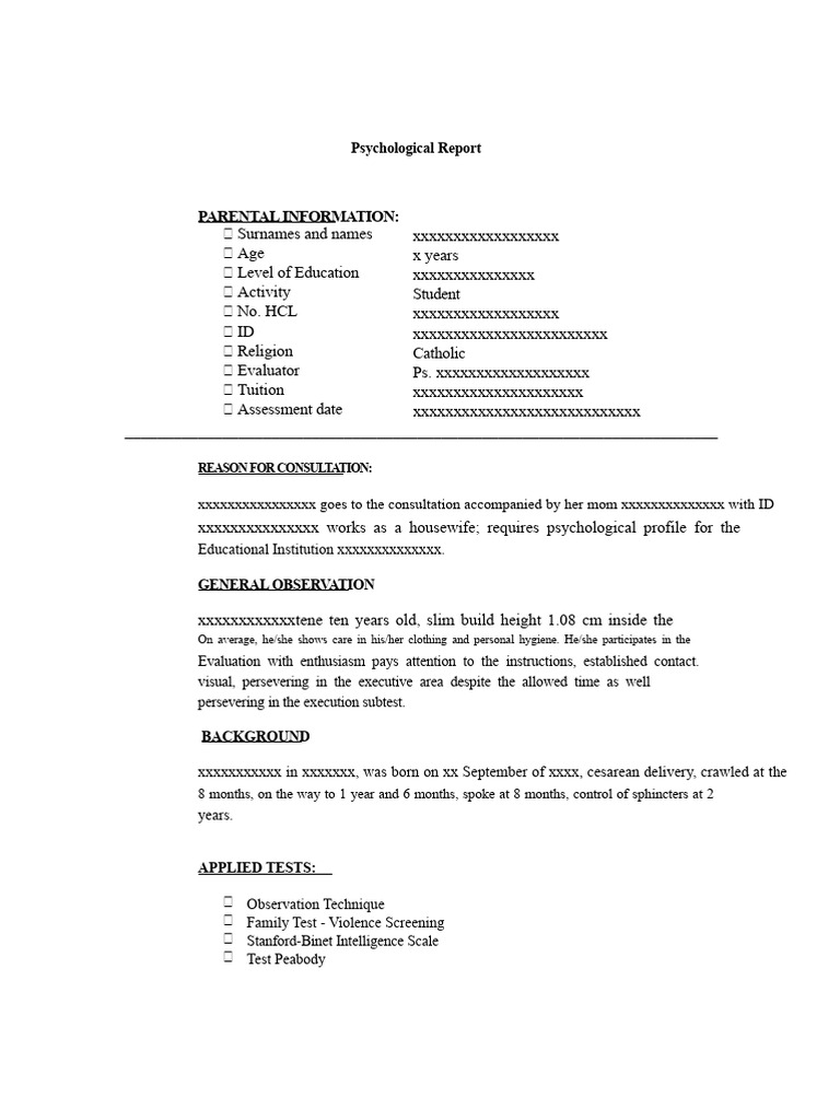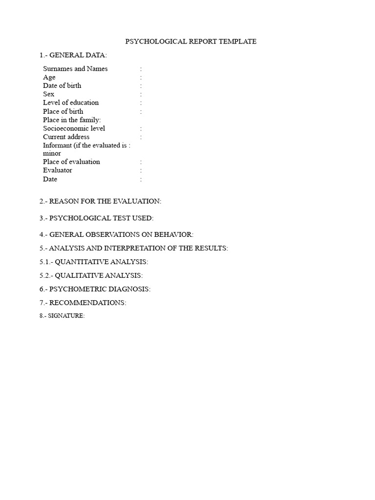 Psychological Evaluation Report Template | Psychology, Report template ...