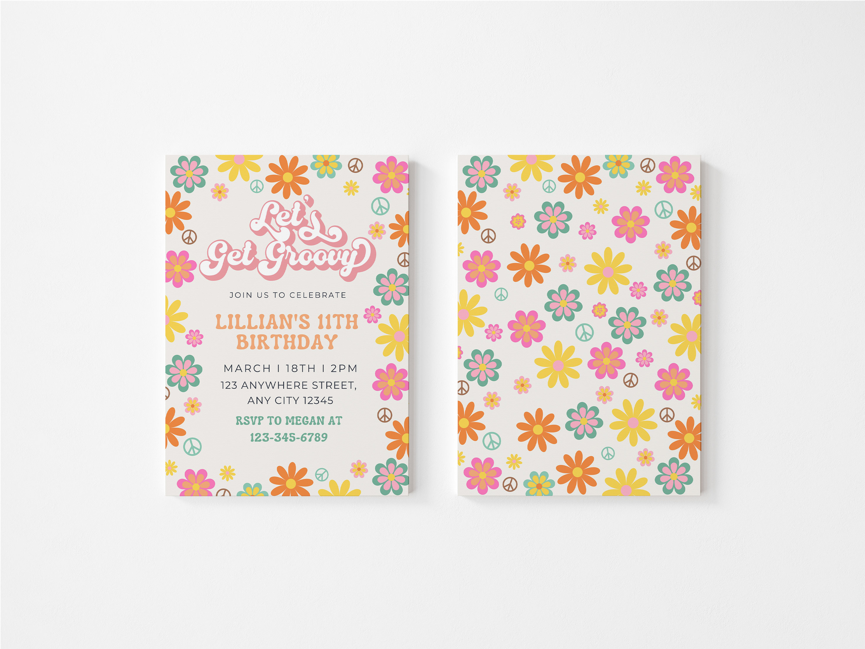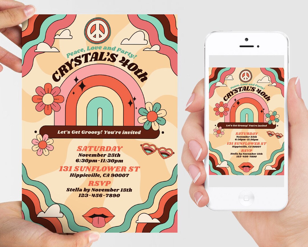 Groovy Printable Invitation, Hippie Print Invitation, 1970s Digital ...