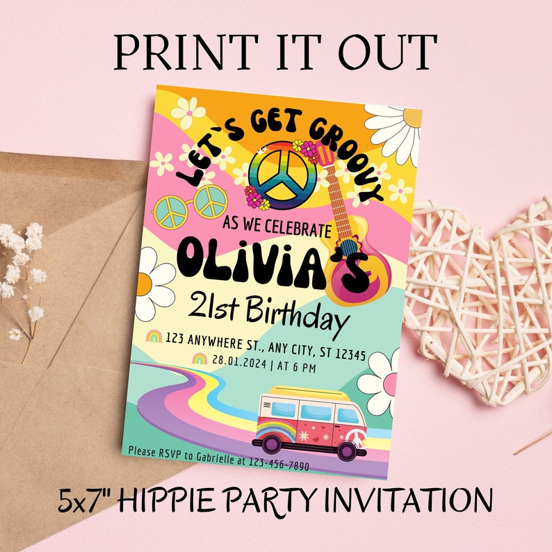 Hippie Party Invitation, Let's Get Groovy Retro Invite, Personalized ...