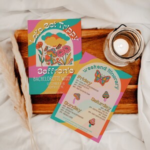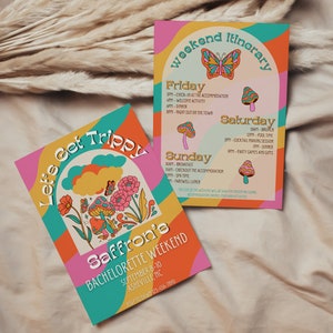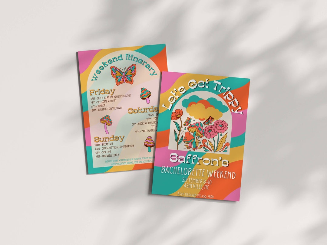 Psychedelic Hippie Bachelorette Invitation Itinerary Template, 60's ...