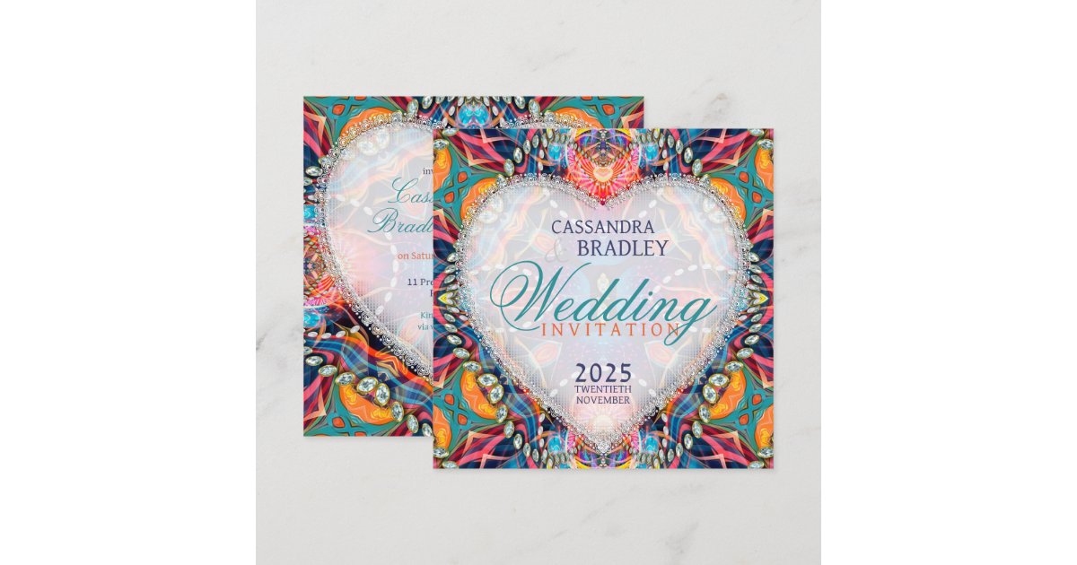 Psychedelic Glam Crystal Heart Wedding Invitation | Zazzle