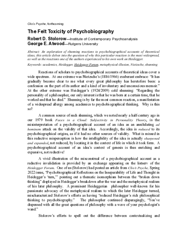 (PDF) The Felt Toxicity of Psychobiography