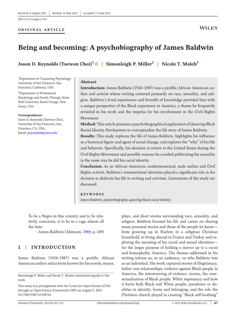 Psychobiography of James Baldwin | PDF | Identity (Social Science)