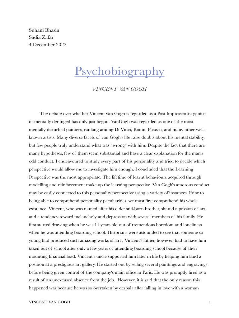 Psychobiography: Vincent Van Gogh | PDF | Vincent Van Gogh | Cognitive ...