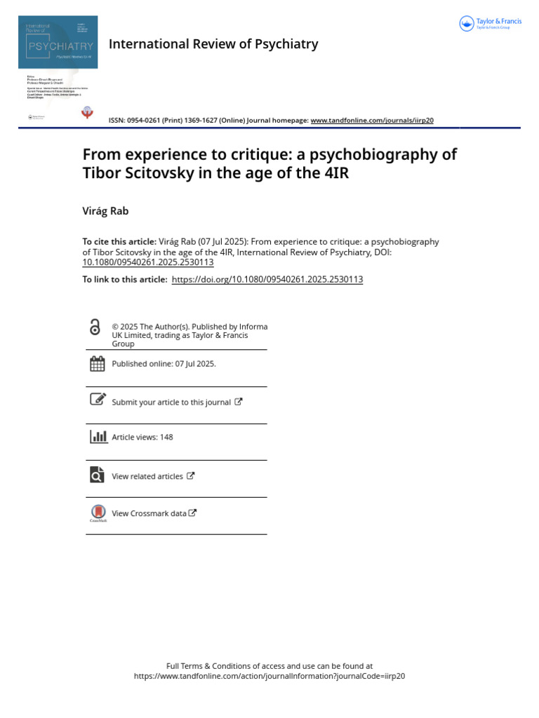 From Experience To Critique A Psychobiography of Tibor Scitovsky in The ...