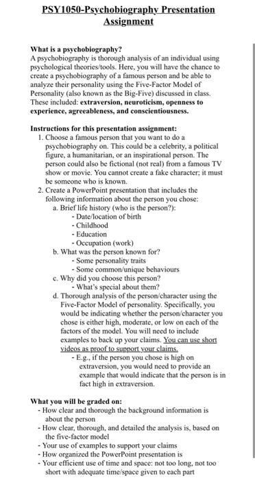 Solved PSY1050-Psychobiography Presentation Assignment What | Chegg.com