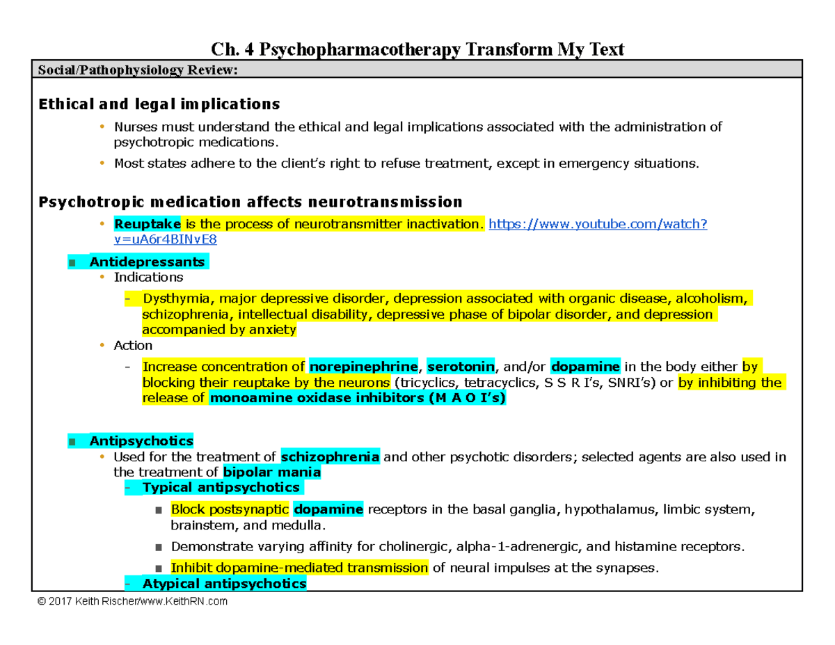 Ch. 4 Psychopharmacotherapy Transform my Text - Ch. 4 ...