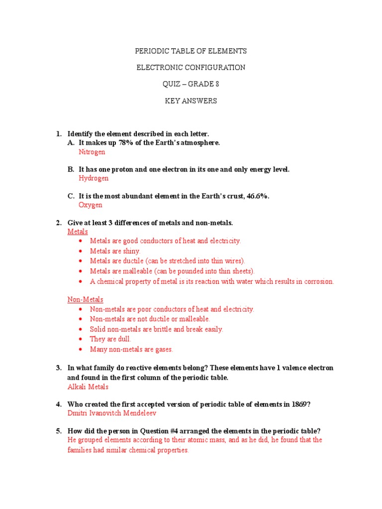 Quiz PTOE EC Key Answers | PDF | Periodic Table | Chemical Elements