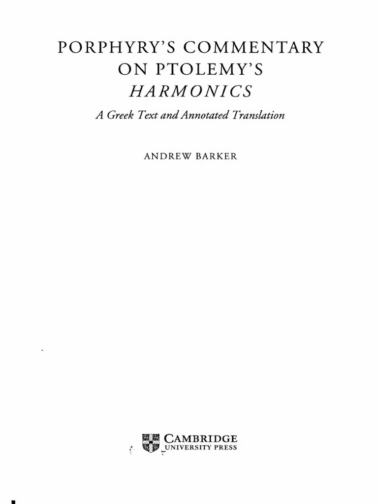 Porphyrys Commentary On Ptolemys Harmonics | PDF | Ptolemy | Aristotle