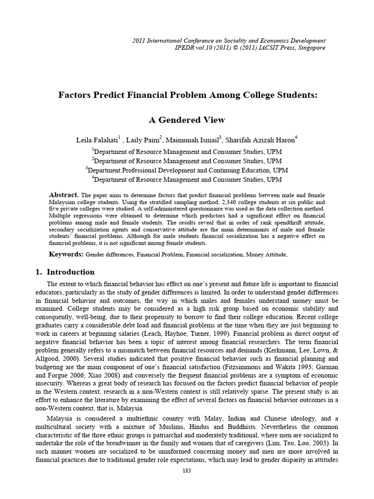 Factors Predict Financial Problem Among | PDF | Socialization ...