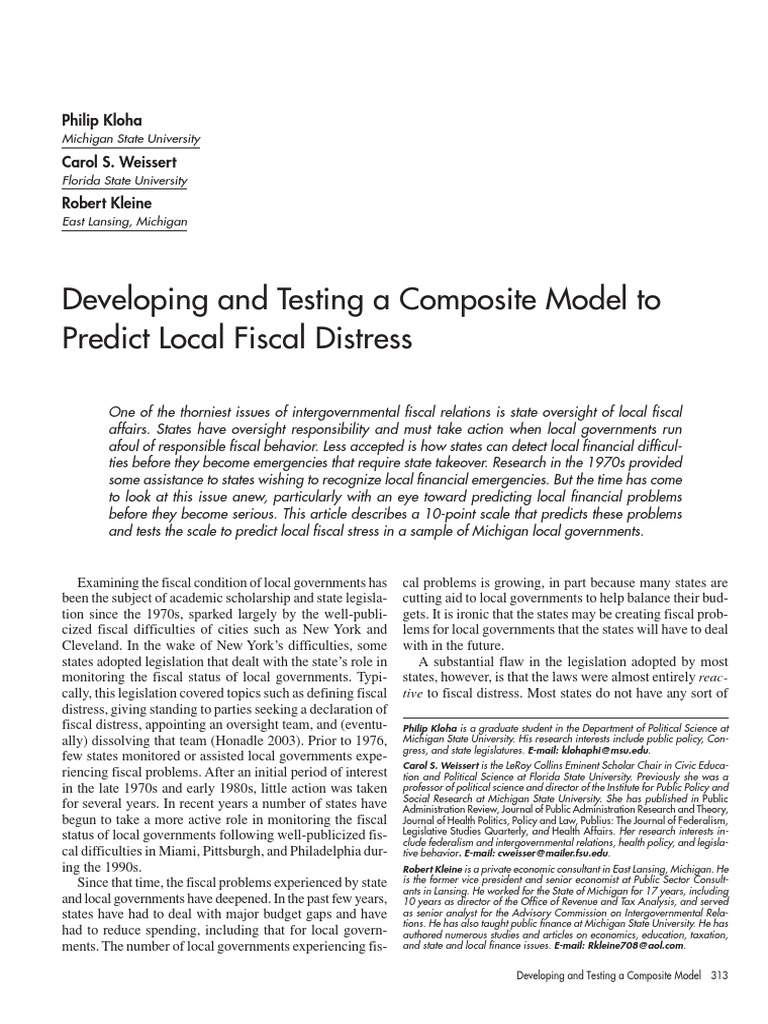Kloha - Developing and Testing A Composite Model To Predict Local ...