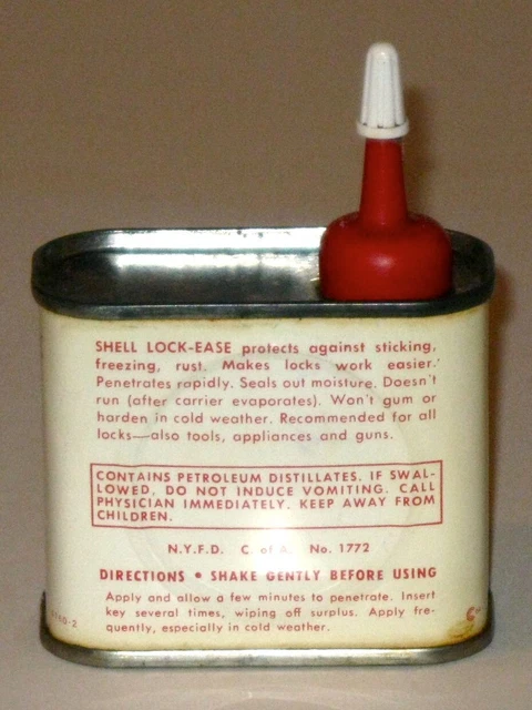 RARE VINTAGE 1960S SHELL Lock-Ease Graphited Lock Fluid Advertising Tin ...