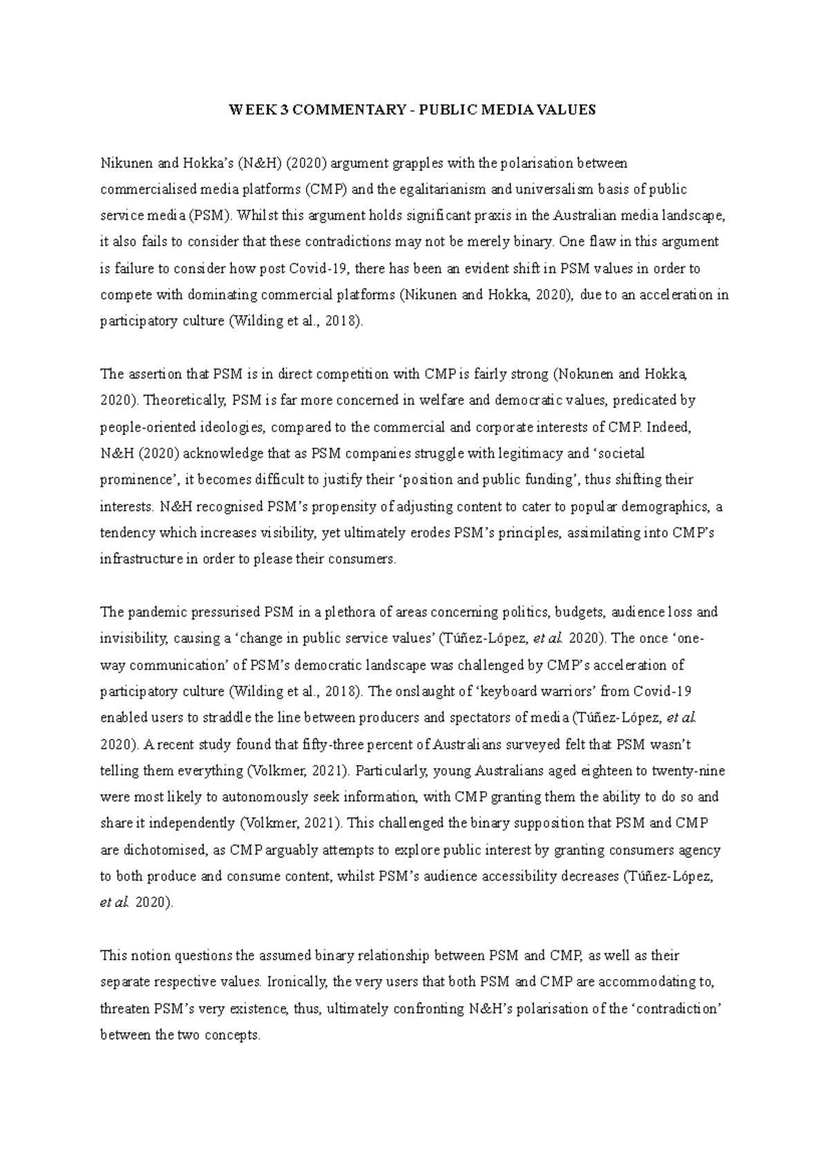 ARTS2096 (MDIA2096) Week 3 Commentary - High Distinction - WEEK 3 ...