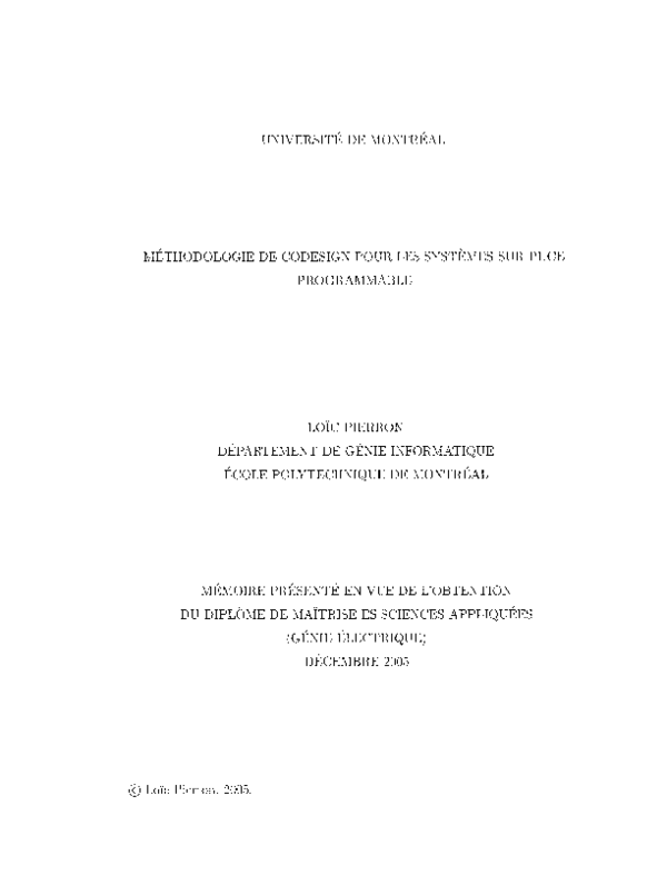 (PDF) Méthodologie de codesign pour les systèmes sur puce programmable