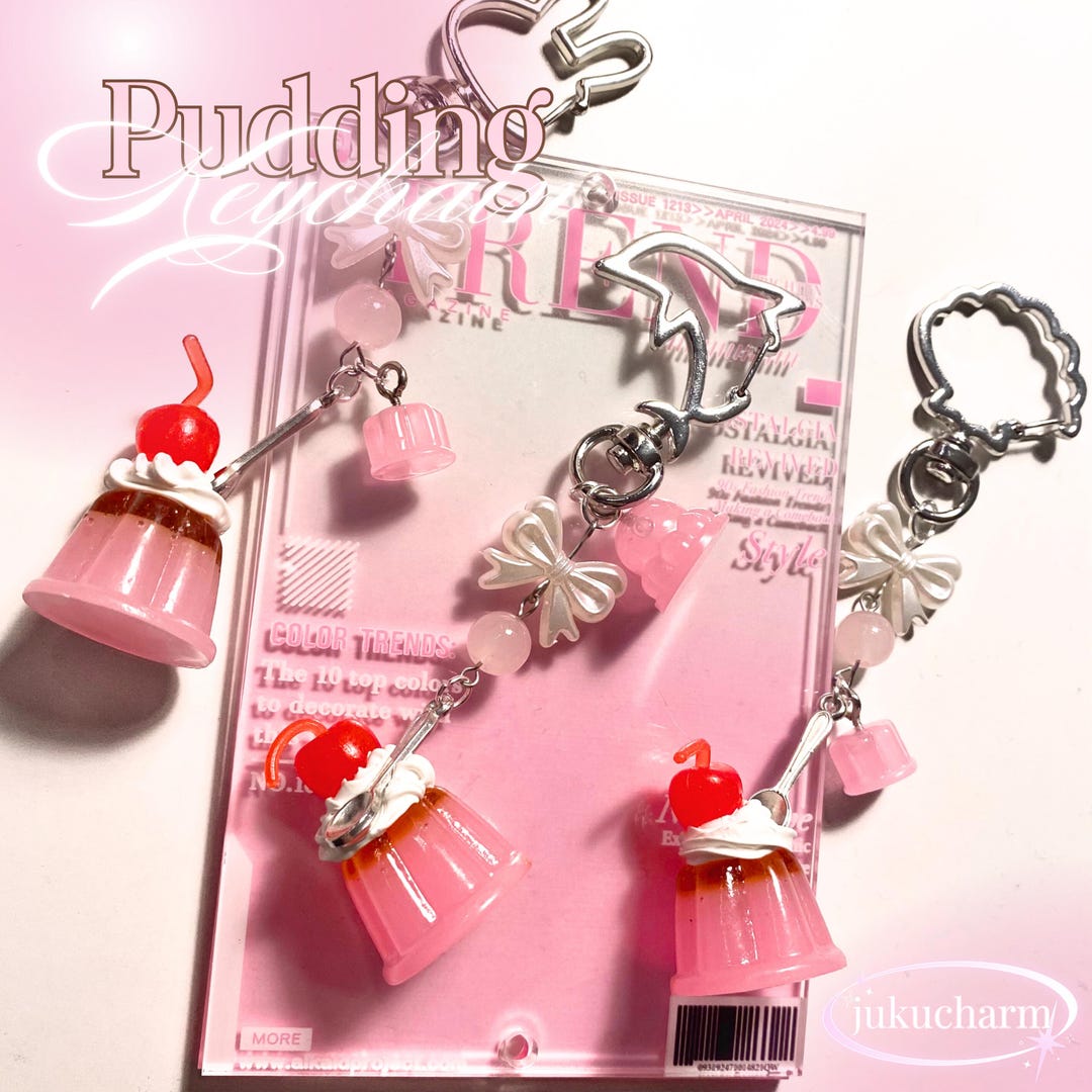 Pudding Keychain: Pink Resin Kawaii Food Charm, Handmade - Etsy