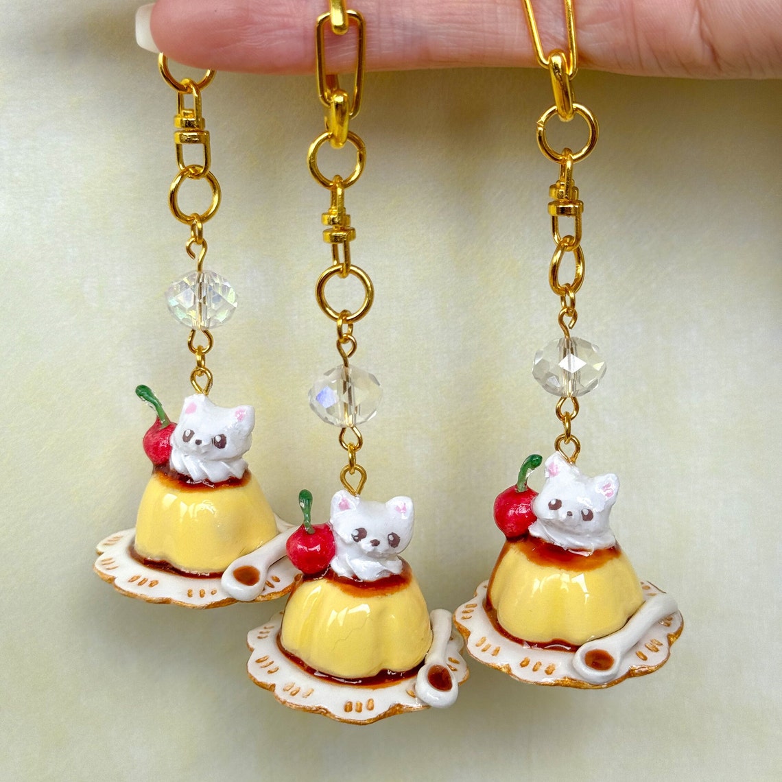 Pudding Keychain, Kawaii Keychain, Fake Desserts Keychain, Kawaii ...
