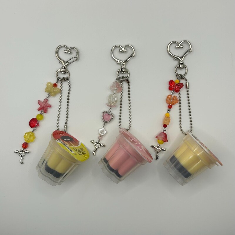 Pudding Keychain Egg Flan Charm Y2K Heisei Retro Aesthetic Beaded ...