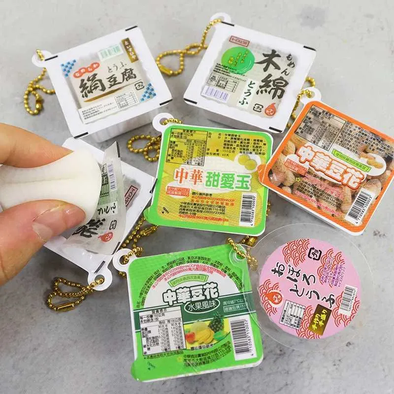 Funny Keychains: Simulated Tofu Pudding Keychain Cute Food Pinch Music ...