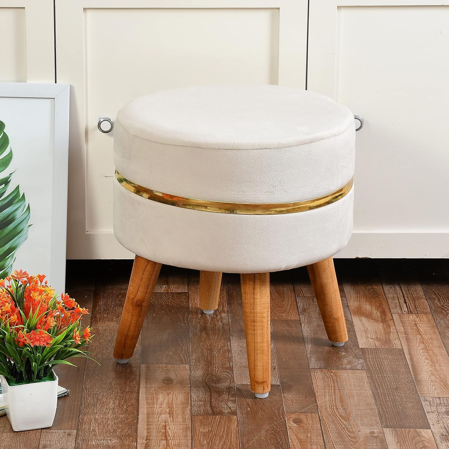 SAJID PUFFS Wooden Pouffe Cushioned Puffy Sitting Stool for Living Room ...