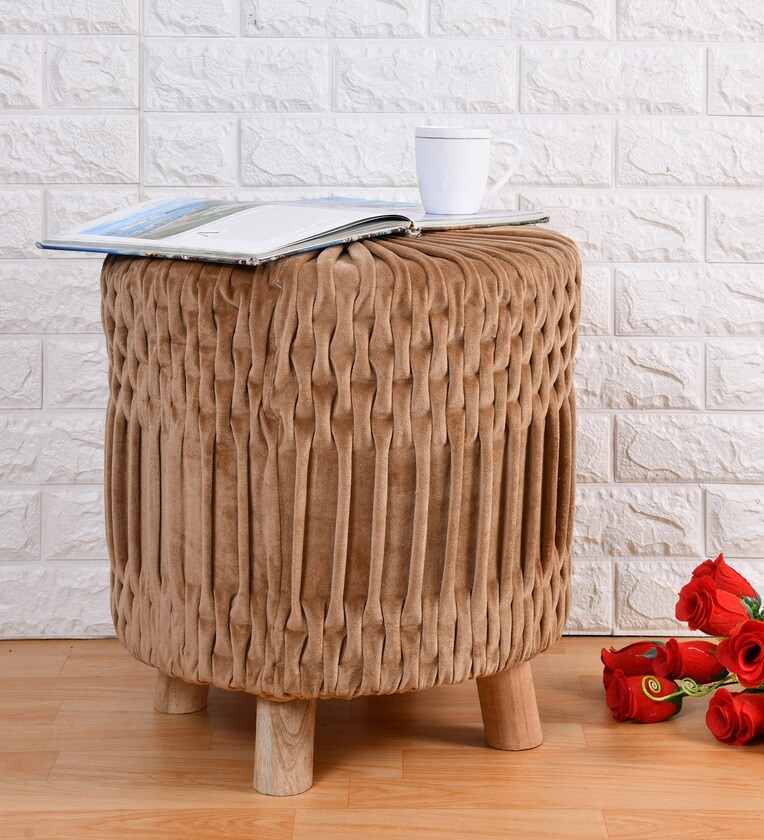 Buy Puffy Fabric Seating Stool in Brown Colour Online - Contemporary ...