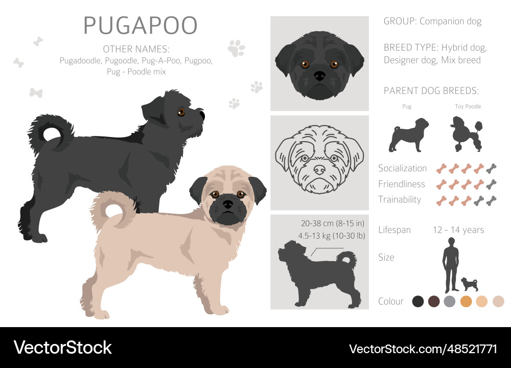 Pugapoo Puppy Clip Art - Cute Mix Breed – Royalty-Free Vector | VectorStock