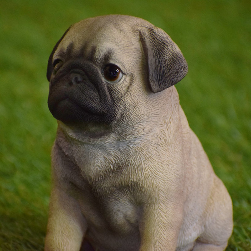 Pug Dog Sitting Statue Puppy Figurine 8 Inches High Realistic Details ...