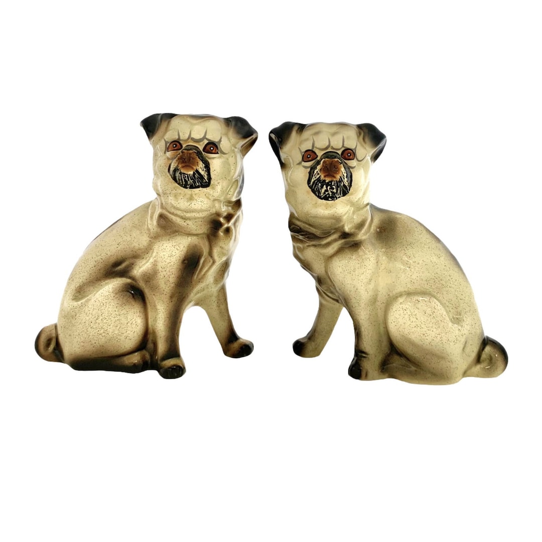 Pug Dog Statue Pair Porcelain Figurine Vintage Staffordshire Style ...