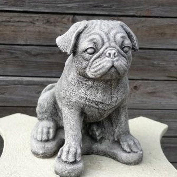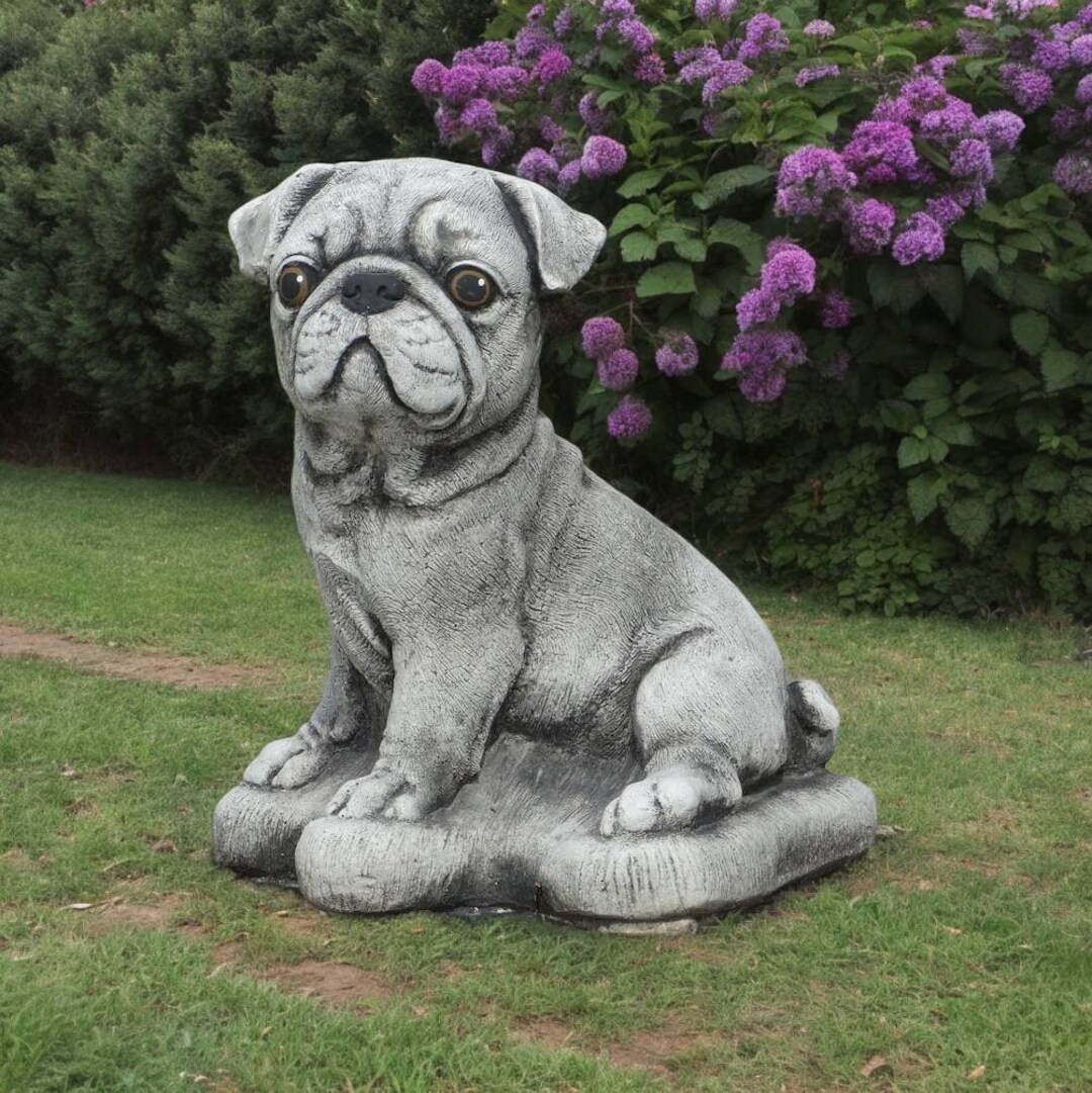 Pug Statue garden Sculpture Large sitting Dog Figurine - Etsy