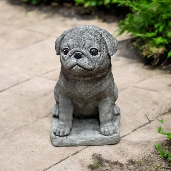 Pug Dog Garden Statue Pug Puppy Stone Statue Concrete Dog - Etsy