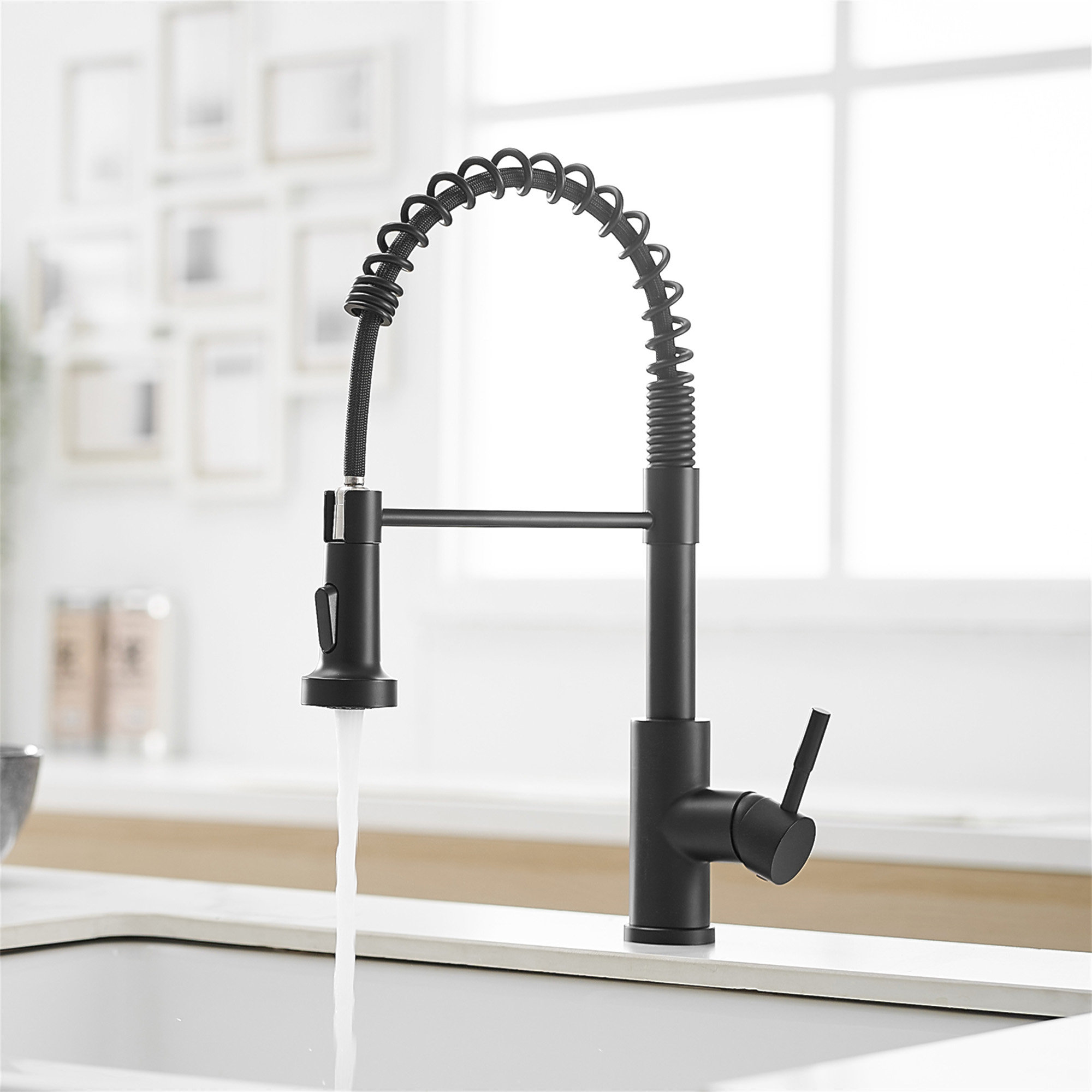 TOOLKISS 360° Rotating Pull-Out Spring Kitchen Faucet in Matte Black ...