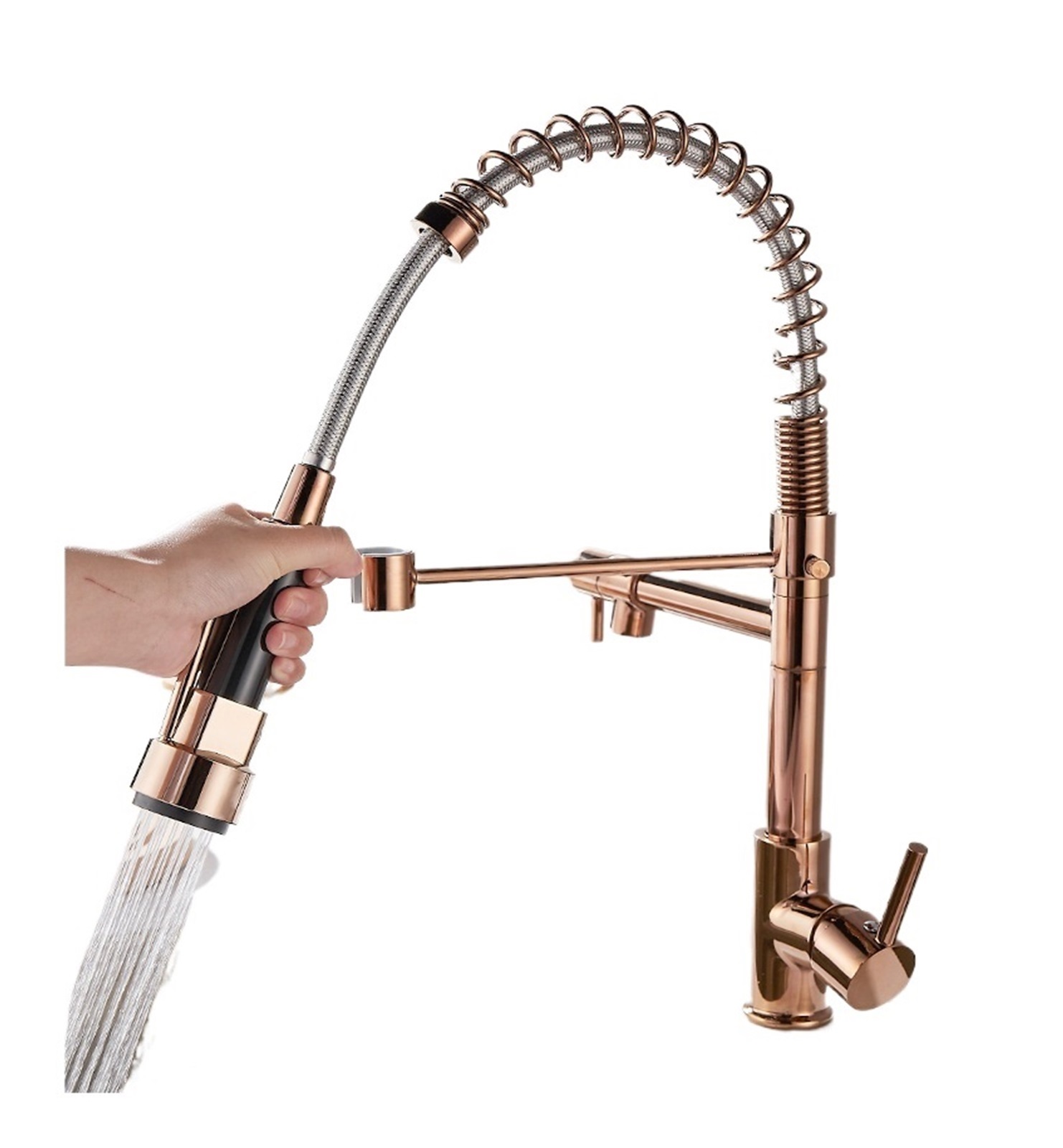Pull Out Spring Kitchen Faucet Commerical Brass Rose Gold Kitchen Sink ...