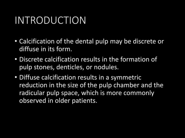 Pulp calcification | PPTX | Dental Health | Diseases and Conditions