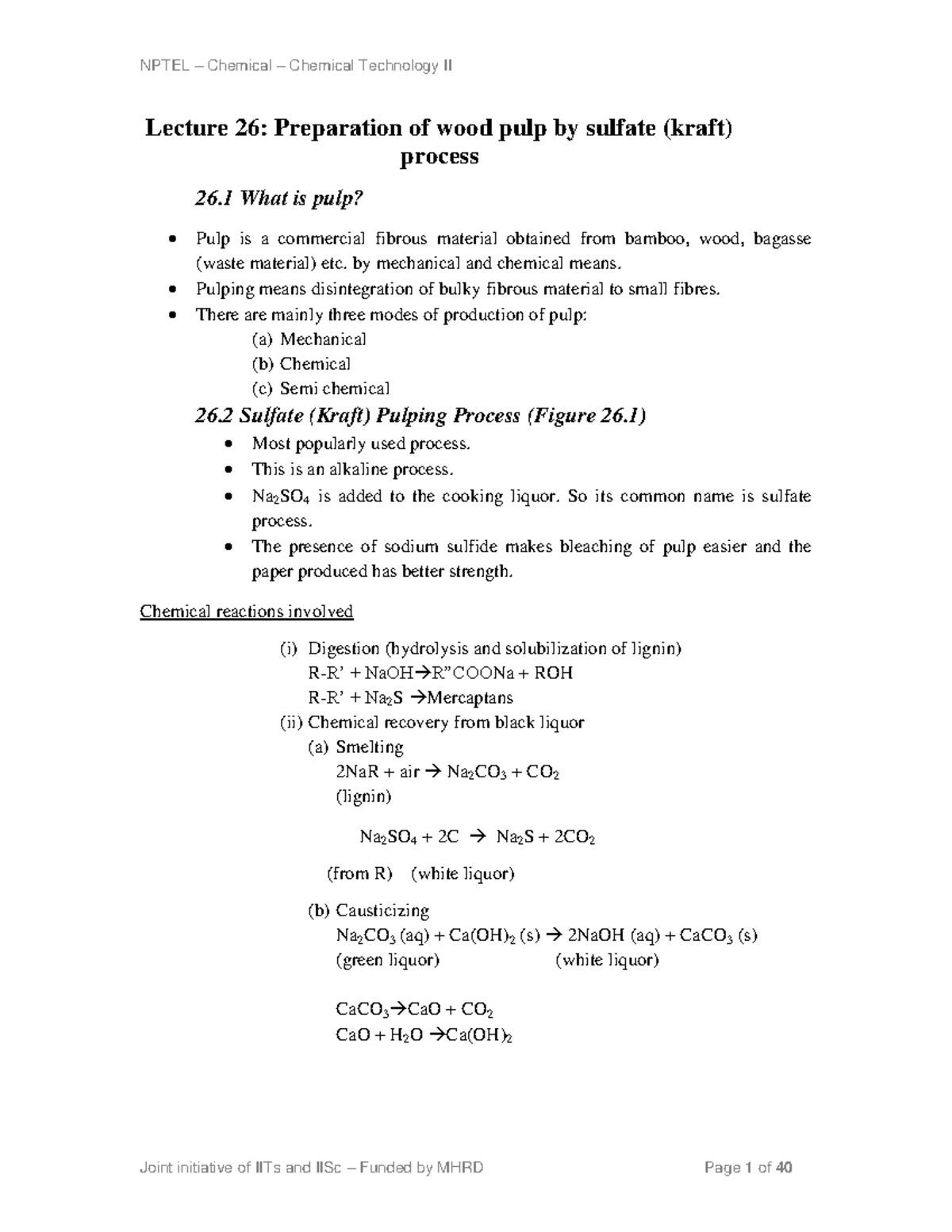 Mod4 - important - Lecture 26: Preparation of wood pulp by sulfate ...
