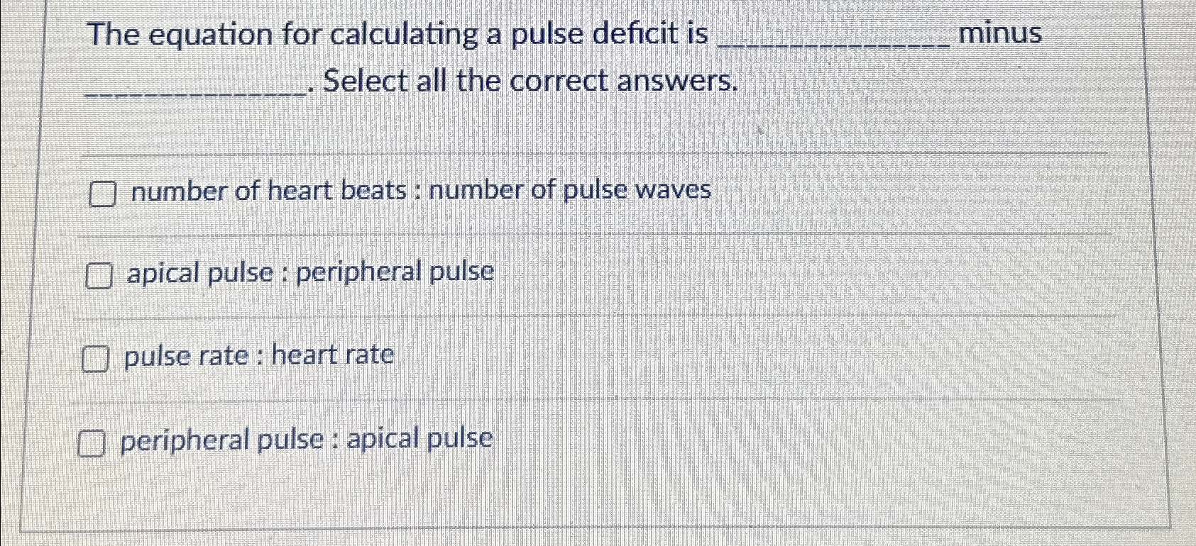 Solved The equation for calculating a pulse deficit is minus | Chegg.com