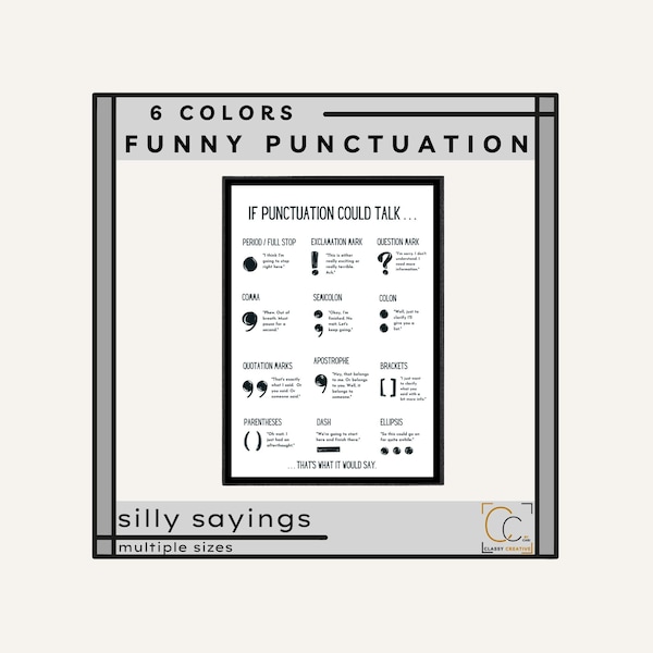 Cutesy Punctuation Posters, Printable English Anchor Charts, Editable ...