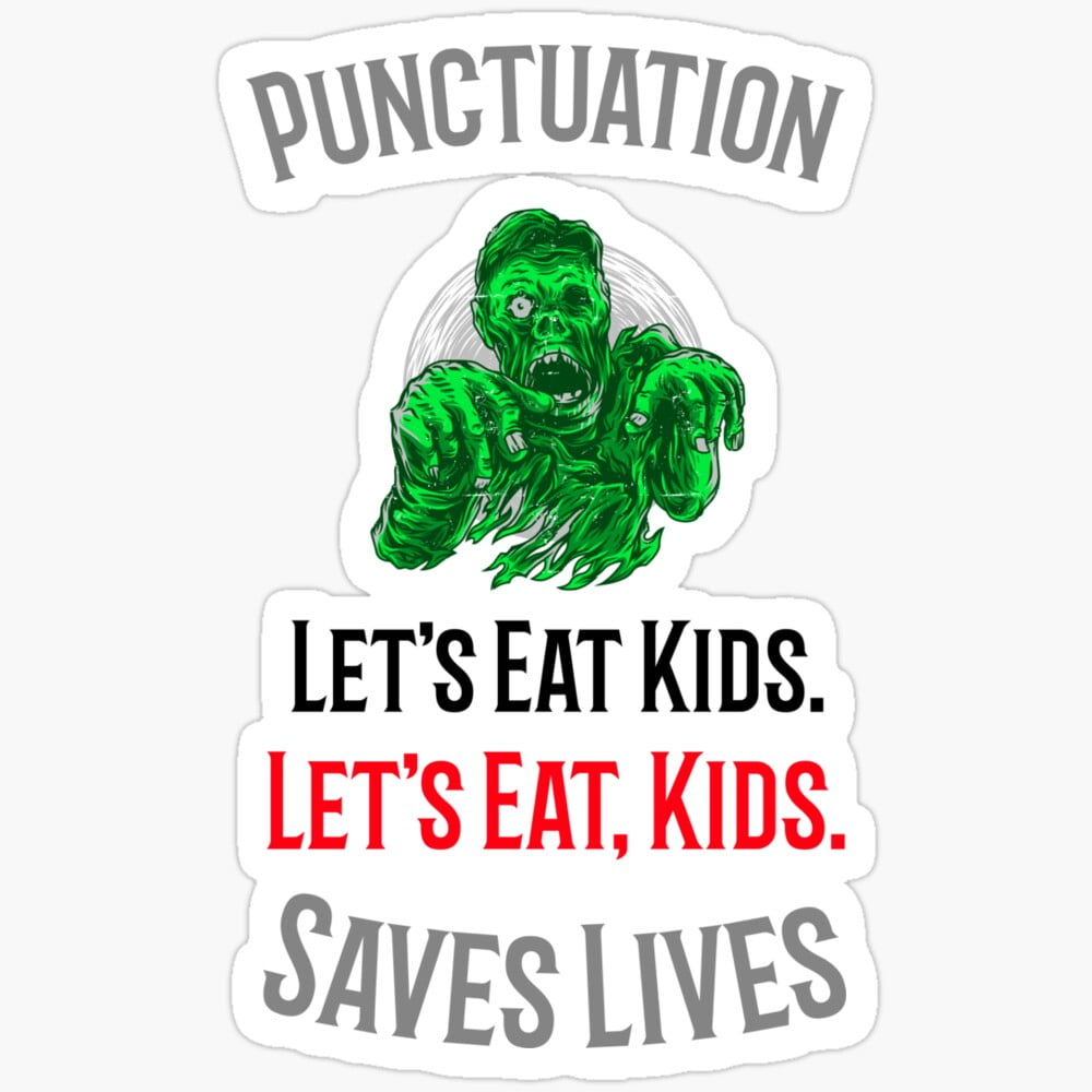 Punctuation saves lives - Funny Saying - Sticker | TeePublic