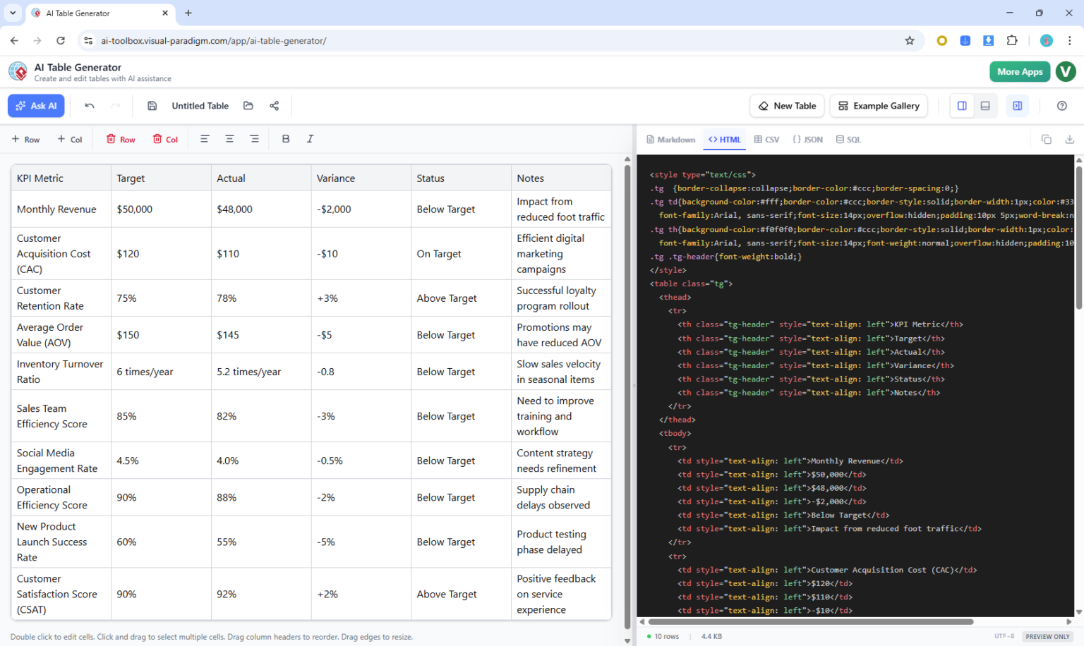 AI Table Generator: HTML, Markdown, CSV, JSON & SQL | Visual Paradigm